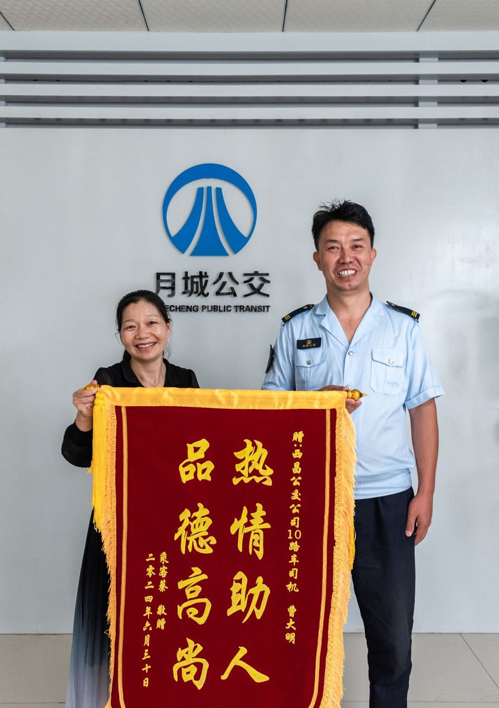 2025年12月9日,乘客曾女士手持一面锦旗,专程前来感谢6路公交车的两位驾驶员:田媛与沙马日曲。锦旗上“拾金不昧品德高,送还手机传真情”的字样,记录着一场关于诚信与温暖的接力故事。