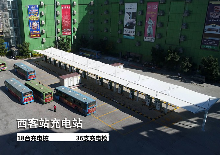 西客站充电站:位于西昌市长安西路西客站公交换乘站内,总占地面积约10亩。装机容量2500千伏安,建有充电功率为120KW的直流充电桩18台,充电枪36支;
