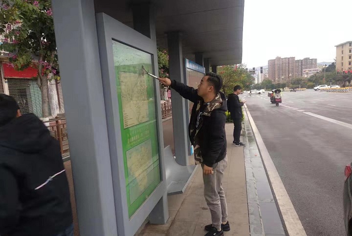 9-10月,我司组织公司人员对市区内各公交站台的广告画面及玻璃损旧情况进行检查,检查中发现部分广告画面已老旧、不清晰,河东大道路段一站台钢化玻璃已损坏。公司立即安排工程人员对检查发现的问题进行处理,以保证站台形象的整体美观,同时安排专门人员对各站台随时进行巡查和修复。